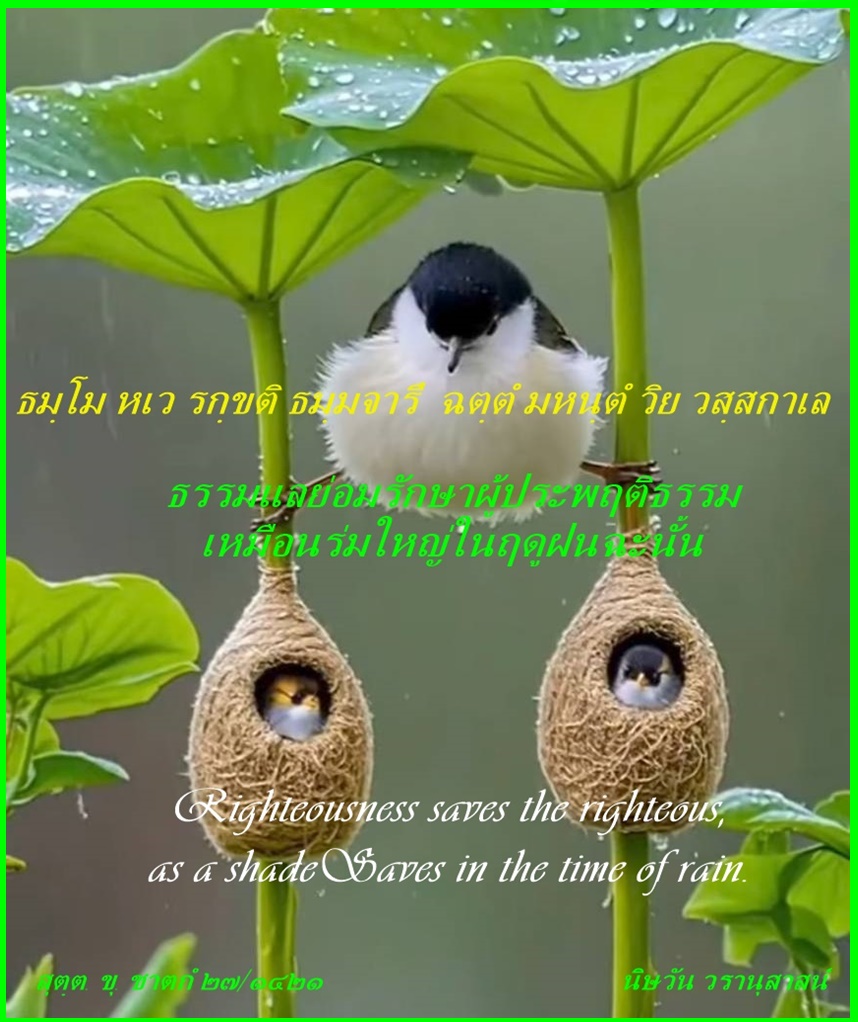 เฉกเช่นในชั่วชีวิตของเรา ควรต้องหาร่มไว้กันฝนแห่งกิเลสที่รั่วรดอยู่เช่นกันนะคะ