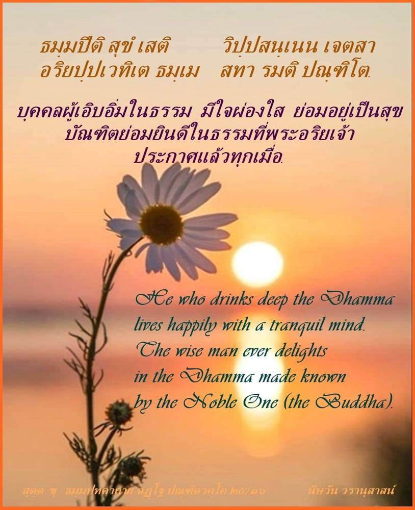 บุคคลผู้เอิบอิ่มในธรรม มีใจผ่องใส ย่อมอยู่เป็นสุข...