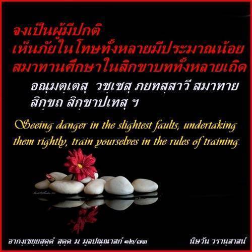 จงเป็นผู้มีปกติเห็นภัยในโทษทั้งหลายมีประมาณน้อยสมาทานศึกษาในสิกขาบททั้งหลายเถิด