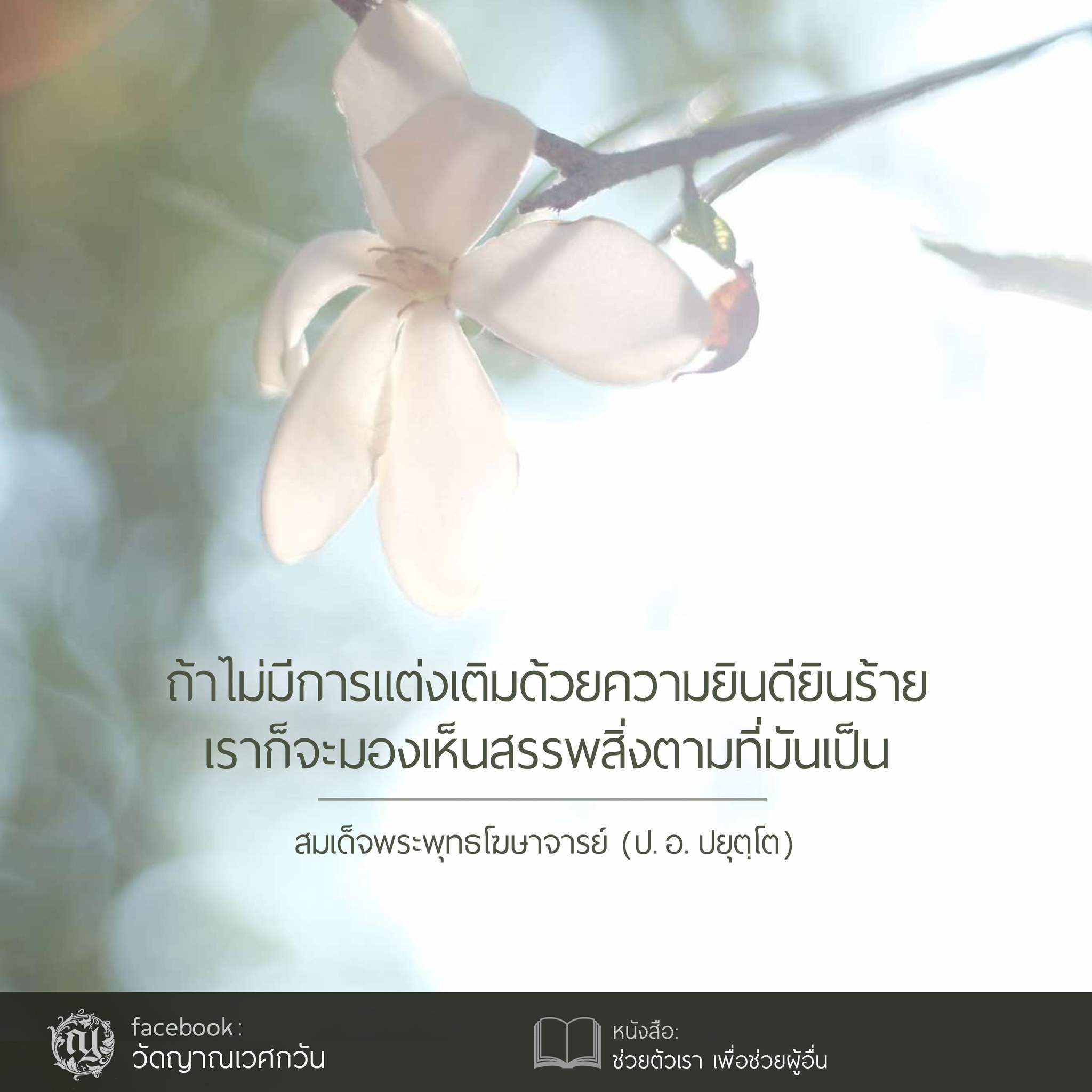 ถ้าไม่มีการแต่งเติมด้วยความยินดียินร้ายเราก็จะมองเห็นสรรพสิ่งตามที่มันเป็น