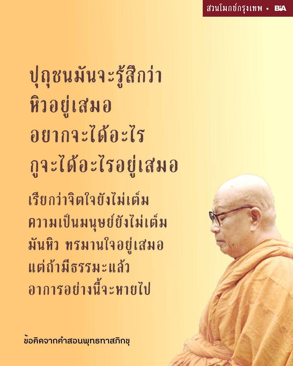 "ปุถุชนมันจะรู้สึกว่าหิวอยู่เสมอ แต่มันก็ไม่รู้ว่าหิวอะไร มันมีอาการรู้สึกว่าหิว อยากจะได้อะไร กูจะได้อะไรอยู่เสมอ แต่แล้วมันก็ไม่รู้ว่ามันต้องการอะไร อย่างนี้มี