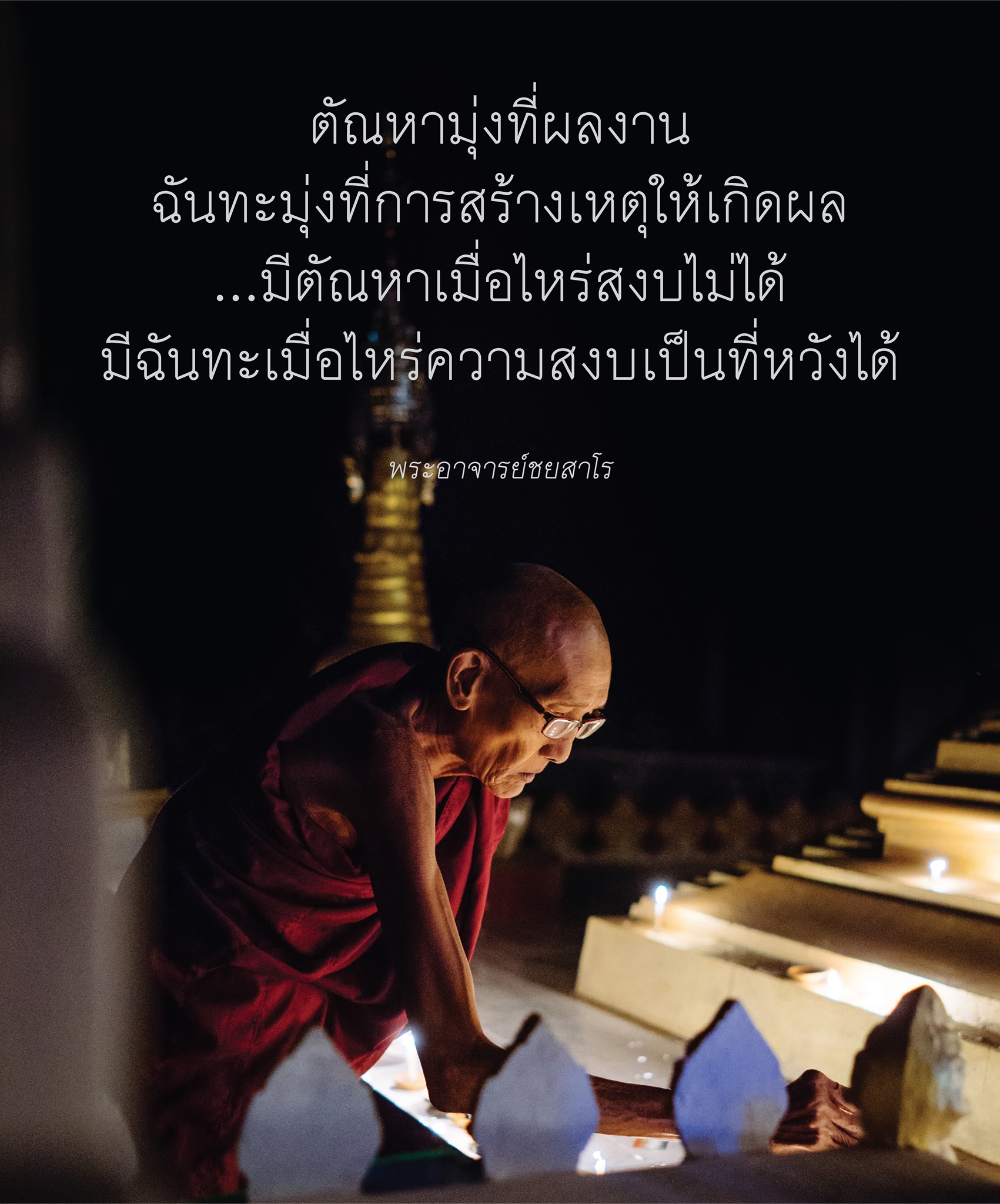 ตัณหามุ่งที่ผลงาน ฉันทะมุ่งที่การสร้างเหตุให้เกิดผล ... มีตัณหาเมื่อไหร่สงบไม่ได้ มีฉันทะเมื่อไหร่ความสงบเป็นที่หวังได้