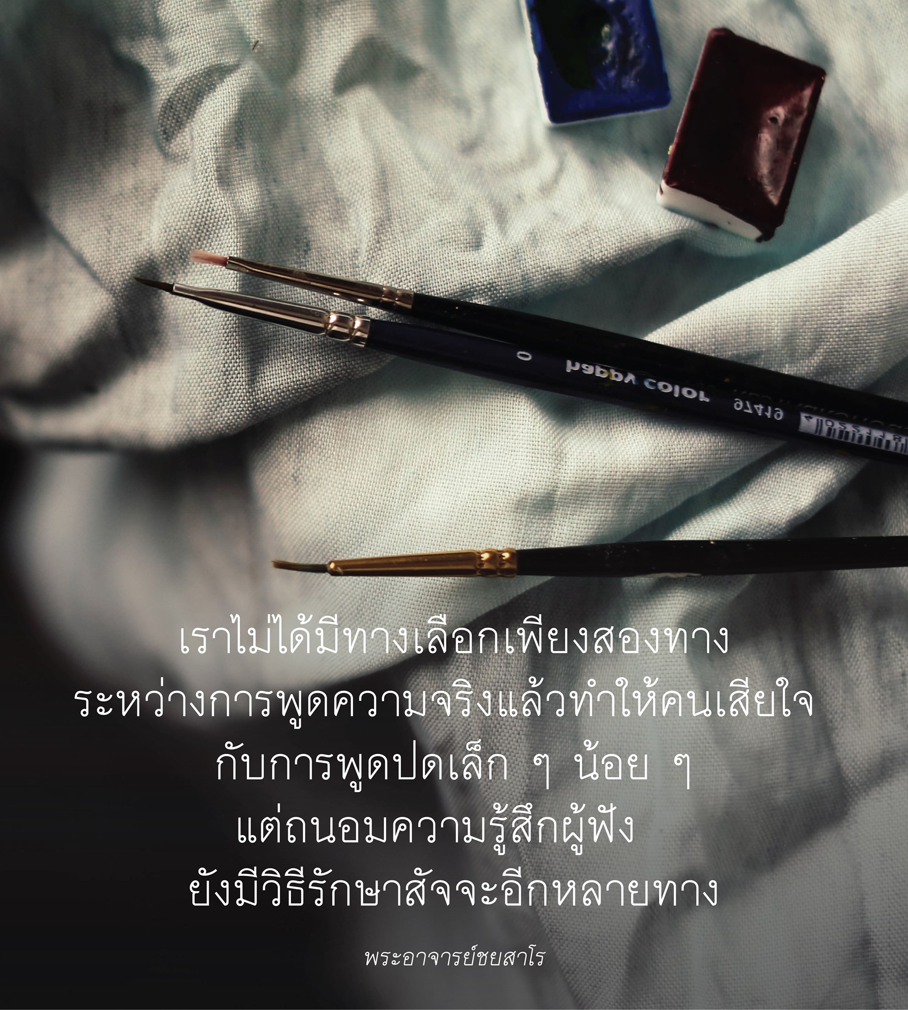 เรามักจะนึกว่าต้องเลือกระหว่างการพูดความจริงแล้วทำให้คนเสียใจ กับการพูดปดด้วยความหวังดีเพื่อไม่ให้ผู้ฟังต้องเจ็บปวด แต่ใช่ว่าเราจะมีทางเลือกเพียงสองทางนี้เท่านั้น หากตั้งใจมองหา ยังมีหนทางอื่น ๆ อีกมากมายหลายทางให้เราได้รักษาสัจจะ