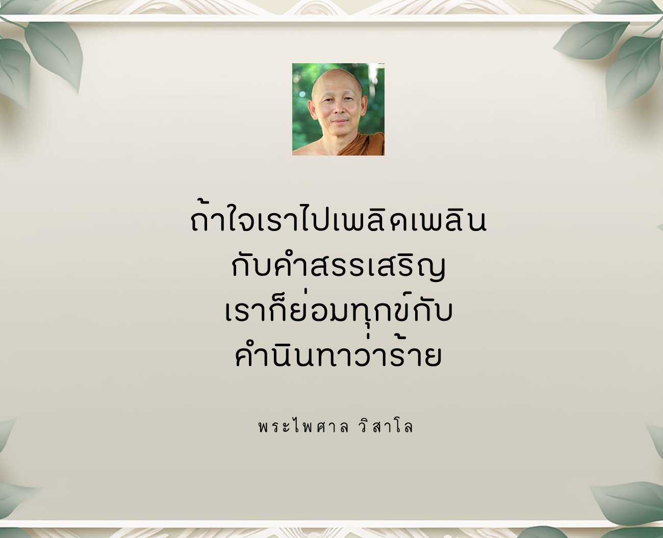 ถ้าใจเราไปเพลิดเพลินกับคำสรรเสริญ เราก็ย่อมทุกข์กับคำนินทาว่าร้าย