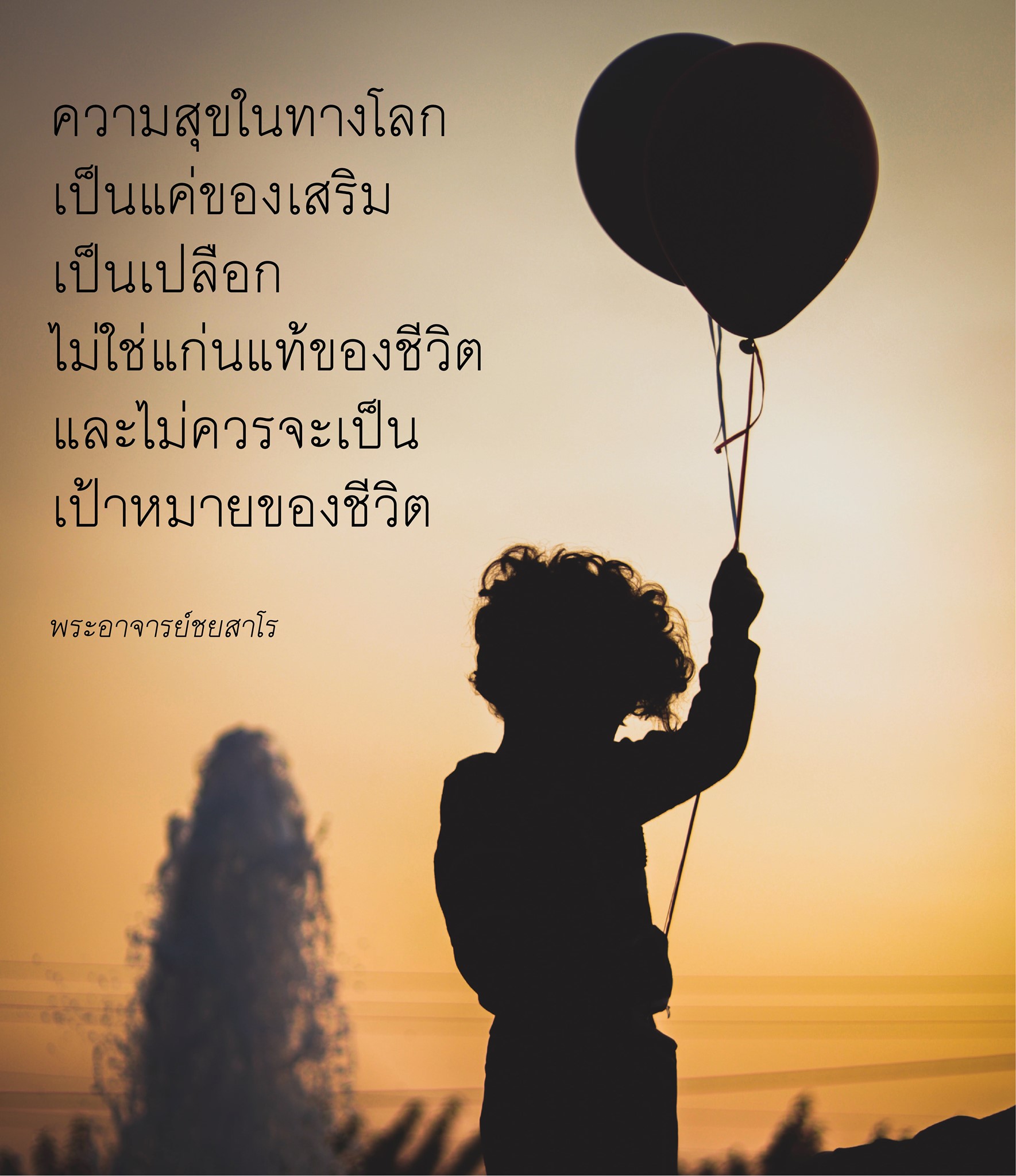 ความสุขในทางโลกว่ามันเป็นแค่ของเสริมเป็นเปลือก ไม่ใช่แก่นแท้ของชีวิตและไม่ควรจะเป็นเป้าหมายของชีวิต