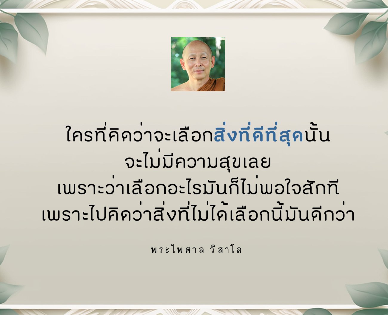 ใครที่คิดว่าจะเลือกสิ่งที่ดีที่สุดนั้น จะไม่มีความสุขเลย เพราะว่าเลือกอะไรมันก็ไม่พอใจสักทีเพราะไปคิดว่าสิ่งที่ไม่ได้เลือกนี้มันดีกว่า