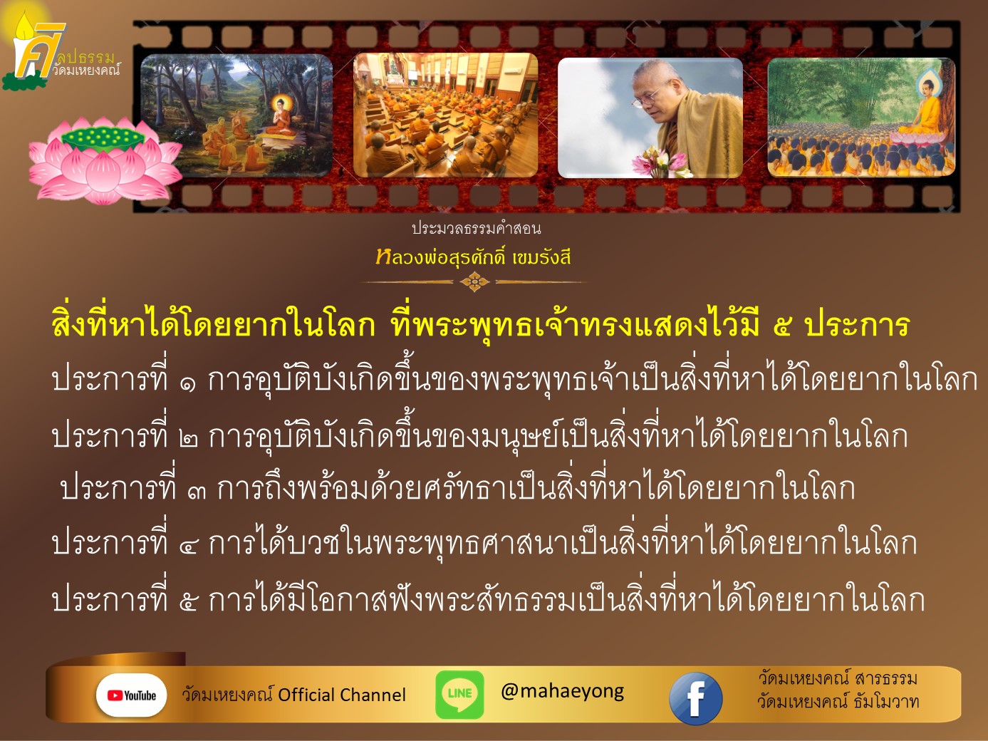 ประการที่ ๕: การได้มีโอกาสฟังพระสัทธรรมเป็นสิ่งที่หาได้โดยยากในโลก