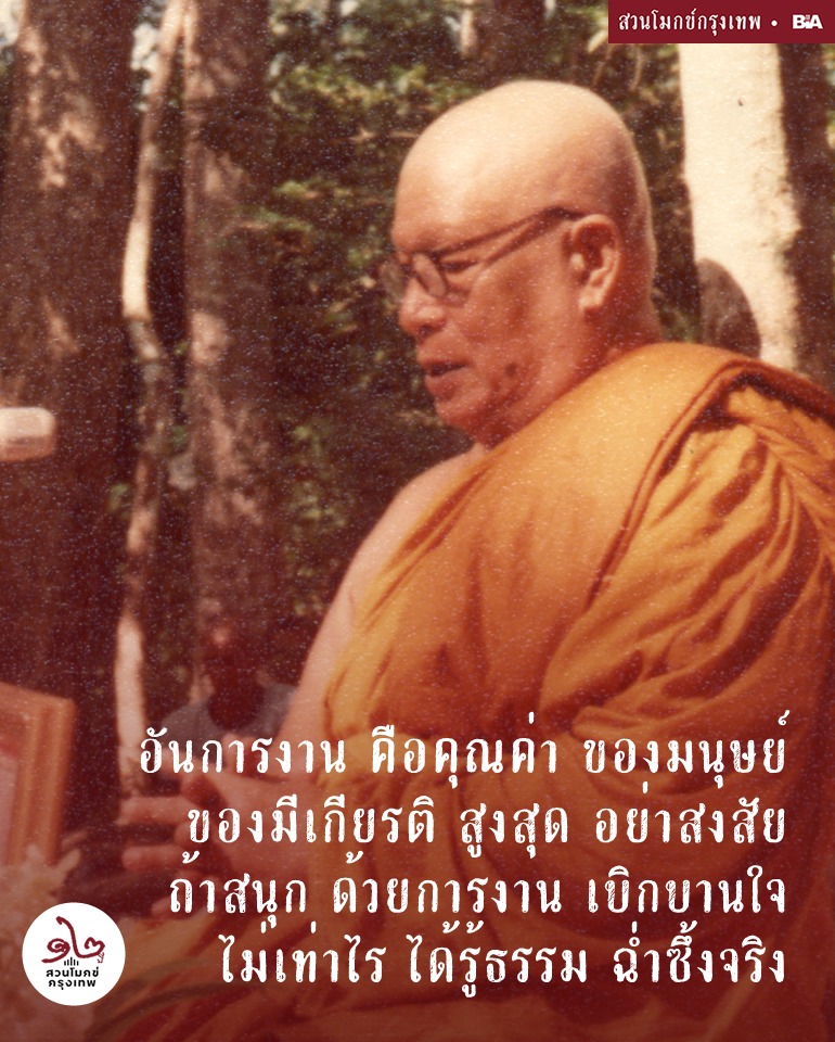 อันการงาน คือคุณค่า ของมนุษย์ ของมีเกียรติ สูงสุด อย่าสงสัย ถ้าสนุก ด้วยการงาน เบิกบานใจ ไม่เท่าไร ได้รู้ธรรม ฉ่ำซึ้งจริง