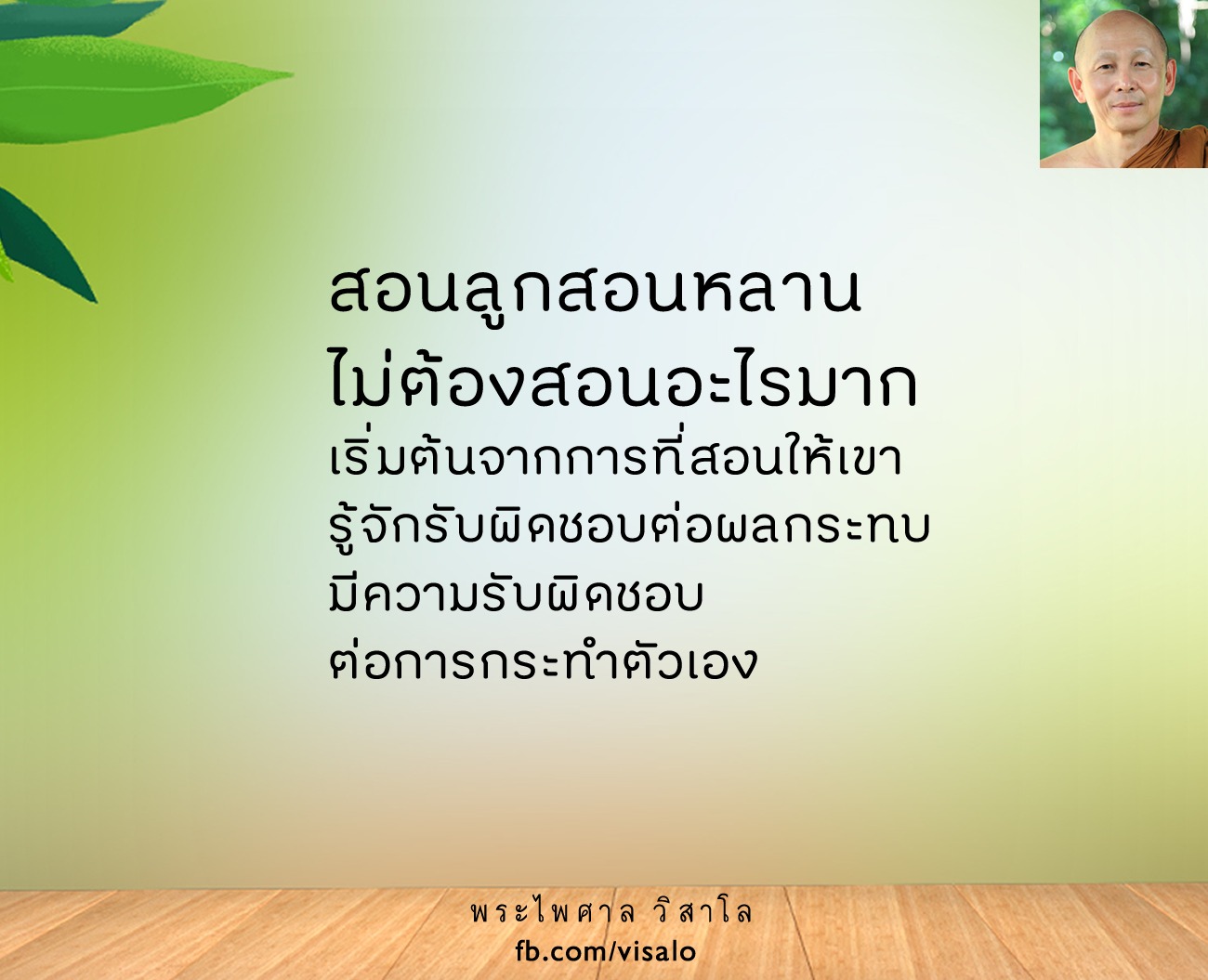 ที่จริงจะสอนลูกสอนหลานเนี่ย ไม่ต้องสอนอะไรมาก เริ่มต้นจากการที่สอนให้เขารู้จักรับผิดชอบต่อผลกระทบ ความรับผิดชอบต่อการกระทำตัวเอง รับรู้ว่าทำอะไรแล้วมันมีผลกระทบอะไรตามมา อันนี้เป็นบทเรียนสำคัญพื้นฐานเลยนะ ทำอะไรแล้วก็ต้องตระหนักถึงผลที่เกิดขึ้นและรับผิดชอบต่อผลที่เกิดขึ้นด้วยนะ