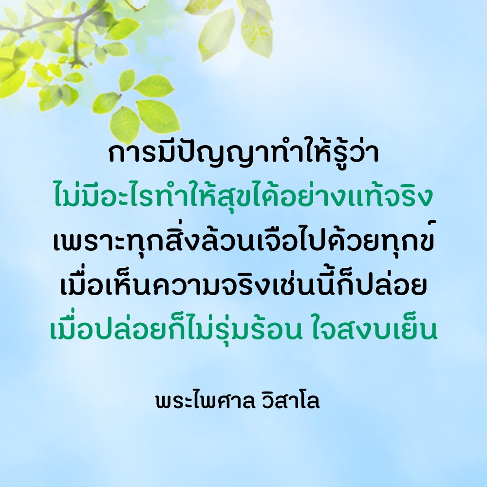 การมี "ปัญญา" ทำให้รู้ว่าไม่มีอะไรทำให้สุขได้อย่างแท้จริง เพราะทุกสิ่งล้วนเจือไปด้วยทุกข์