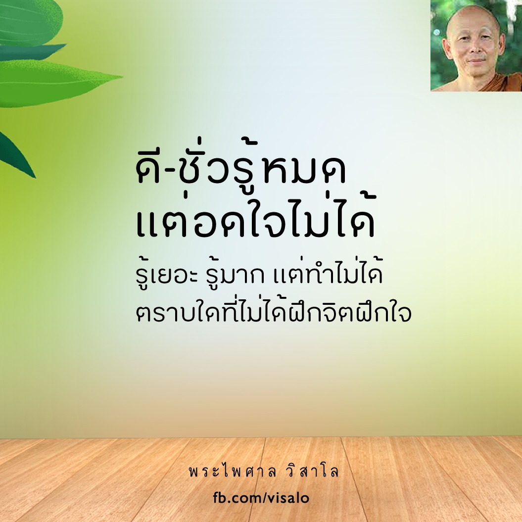 ดีชั่วรู้หมด แต่อดใจไม่ได้ รู้เยอะ รู้มาก แต่ทำไม่ได้ ตราบใดที่ไม่ได้ฝึกจิตฝึกใจ