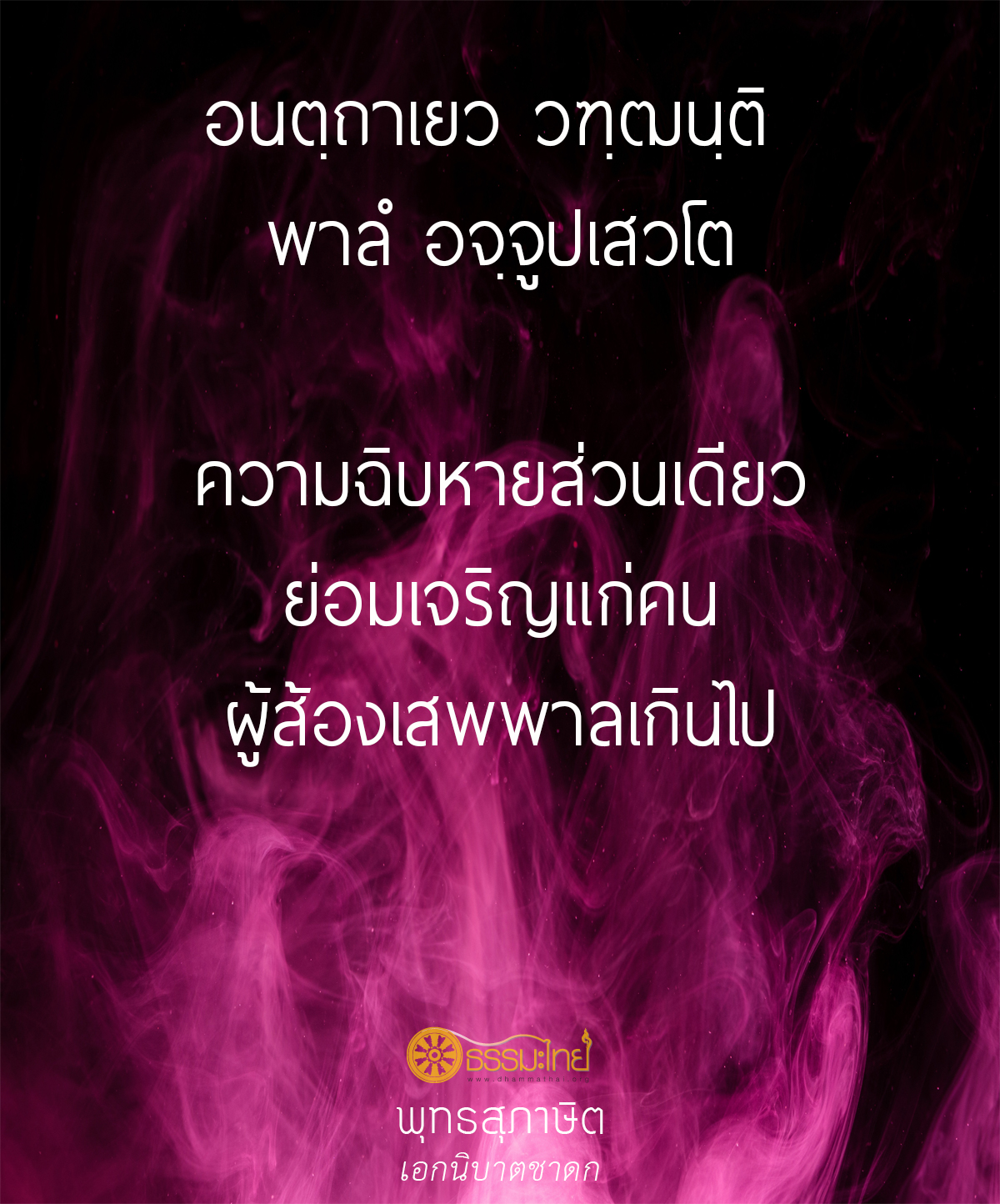 • อนตฺถาเยว วฑฺฒนฺติ พาลํ อจฺจูปเสวโต ความฉิบหายส่วนเดียว ย่อมเจริญแก่คนผู้ส้องเสพพาลเกินไป
