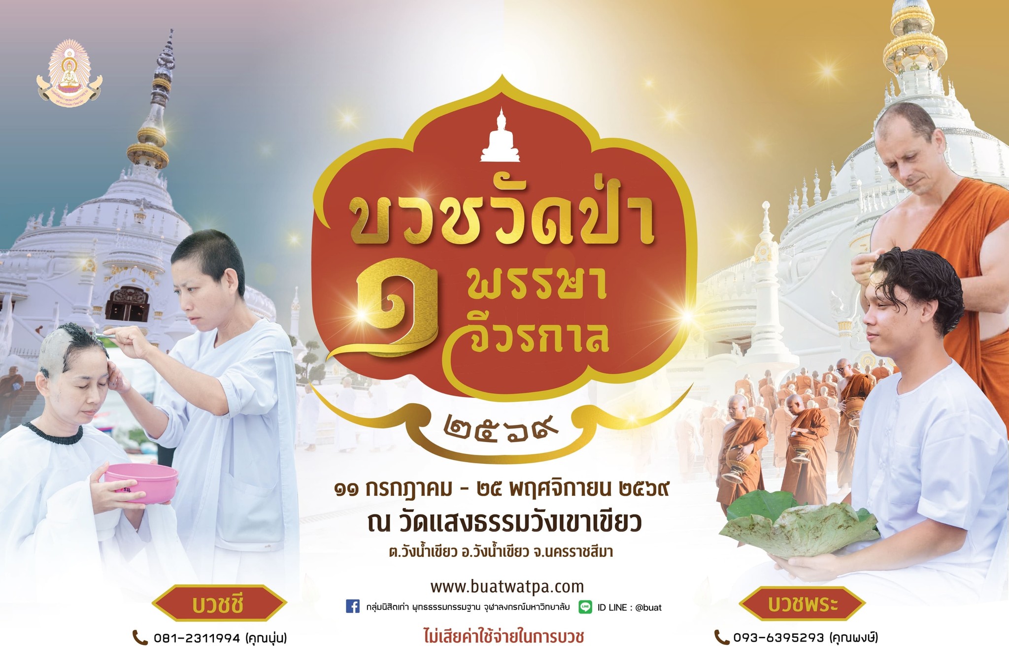 • ประชาชนทั่วไป : 11 ก.ค.- 25 พ.ย.69 (หนึ่งพรรษา+หนึ่งจีวรกาล)