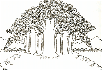 พวกเทพยดาที่อยู่ต้นไม้ใหญ่ต่างจูงลูกไปหาพวกรุกขเทวดาที่ป่ารัง