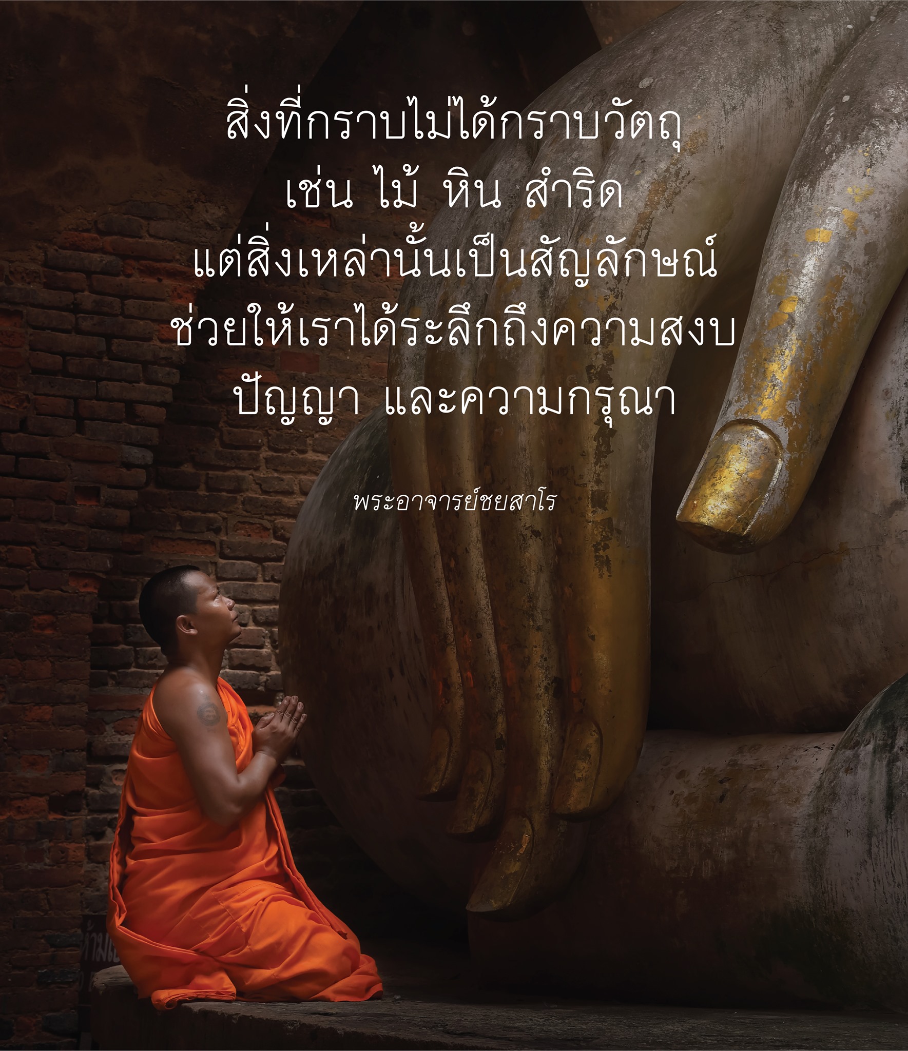 สิ่งที่กราบไม่ได้กราบวัตถุ เช่น ไม้ หิน สำริด แต่สิ่งเหล่านั้นเป็นสัญลักษณ์ช่วยให้เราได้ระลึกถึงความสงบ ปัญญา และความกรุณา
