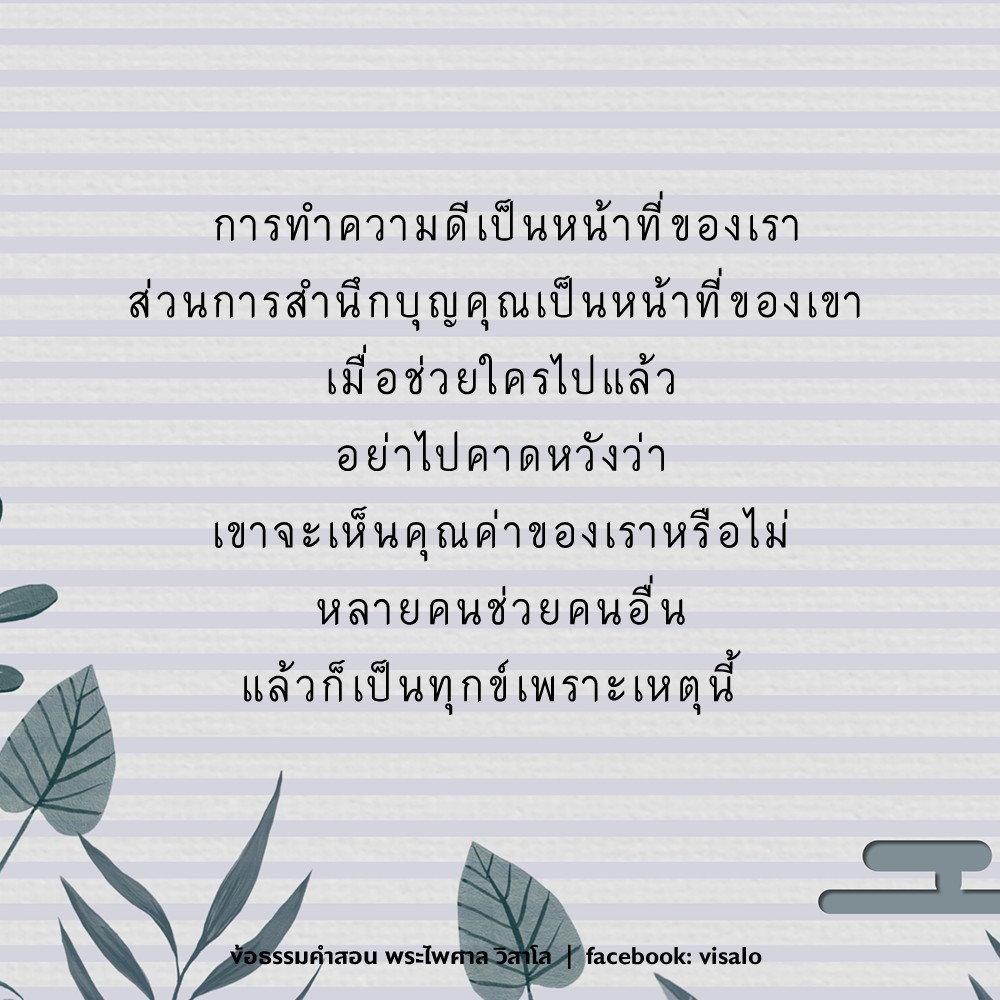 การทำความดี ช่วยเหลือผู้อื่นเป็นหน้าที่ของเรา ส่วนคนที่เราช่วยนั้นจะเห็นคุณค่าของเราหรือไม่ เป็นเรื่องของเขา