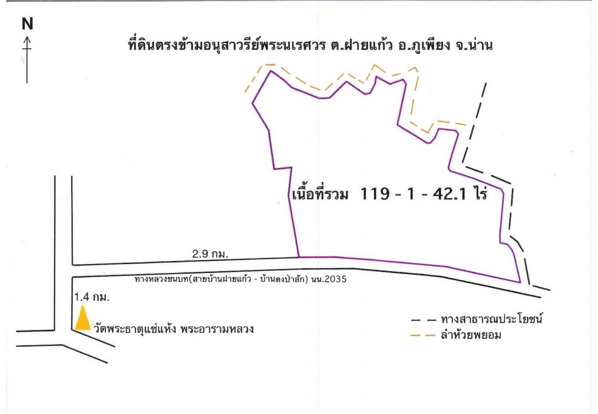 ขายที่ดิน 119 ไร่ ติดถนนบ้านฝายแก้ว-บ้านดงป่าสัก ต.ฝายแก้ว อ.ภูเพียง จ.น่าน ไร่ละ 5 แสนบาท