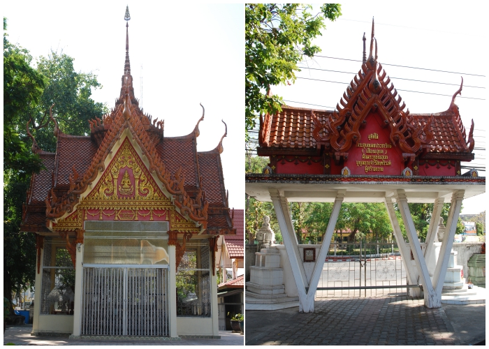 ซุ้มประตูวัดศรีอุบลรัตนาราม ที่สร้างอุทิศให้พระอุบลเดชประชารักษ์ (เสือ ณ อุบล) ต้นตระกูล ณ อุบล ผู้บริจาคที่ดินสร้างวัด
